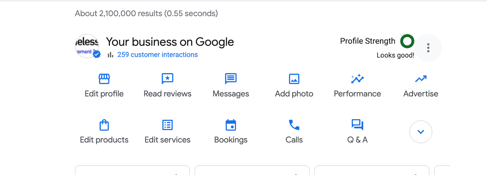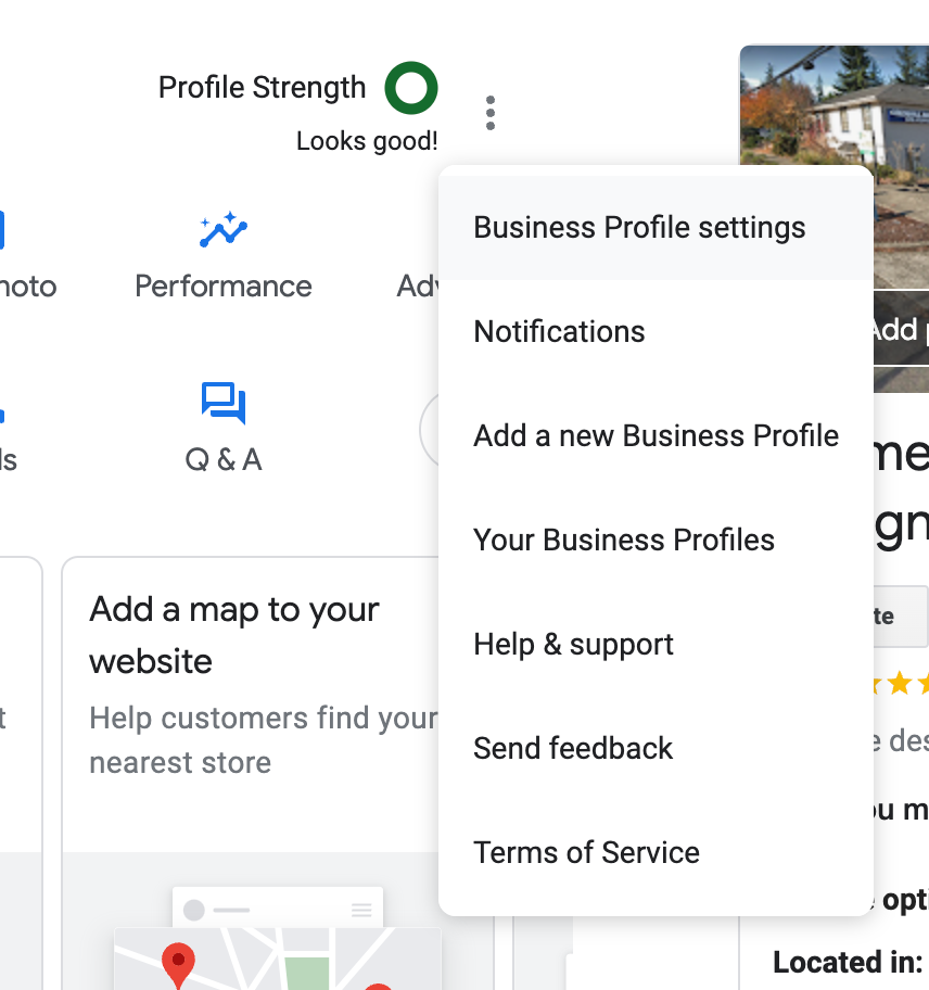 Then click the three dots near your profile strength in the upper right corner and then choose Business Profile settings.